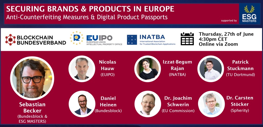 (June 2024) Sebastian Becker was co-hosting a Bundesblock & INATBA webinar on the EBSI-ELSA lighthiose project of the EU IP Office in Alicante and on Digital Product Passports.